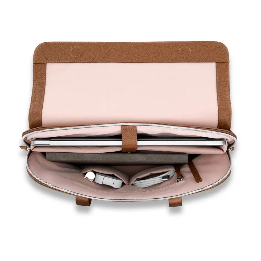 el maletín convertible de piel cuenta con una funda acolchada para computadora portátil, organización interior con un bolsillo con cremallera y compartimentos, y una discreta correa stackit™. la cremallera y los cierres magnéticos del compartimento principal ofrecen versatilidad y seguridad.