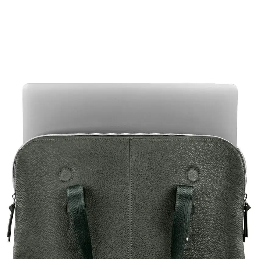el maletín convertible de piel cuenta con una funda acolchada para computadora portátil, organización interior con un bolsillo con cremallera y compartimentos, y una discreta correa stackit™. la cremallera y los cierres magnéticos del compartimento principal ofrecen versatilidad y seguridad.