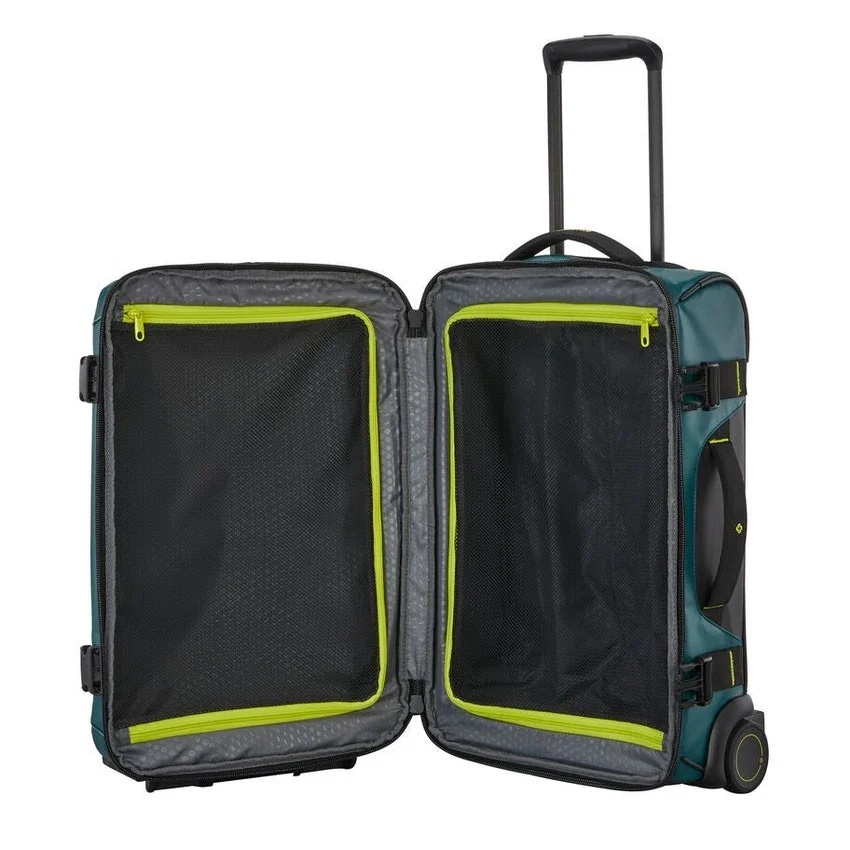 las dimensiones totales de la maleta, incluyendo asas y ruedas