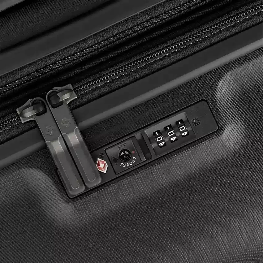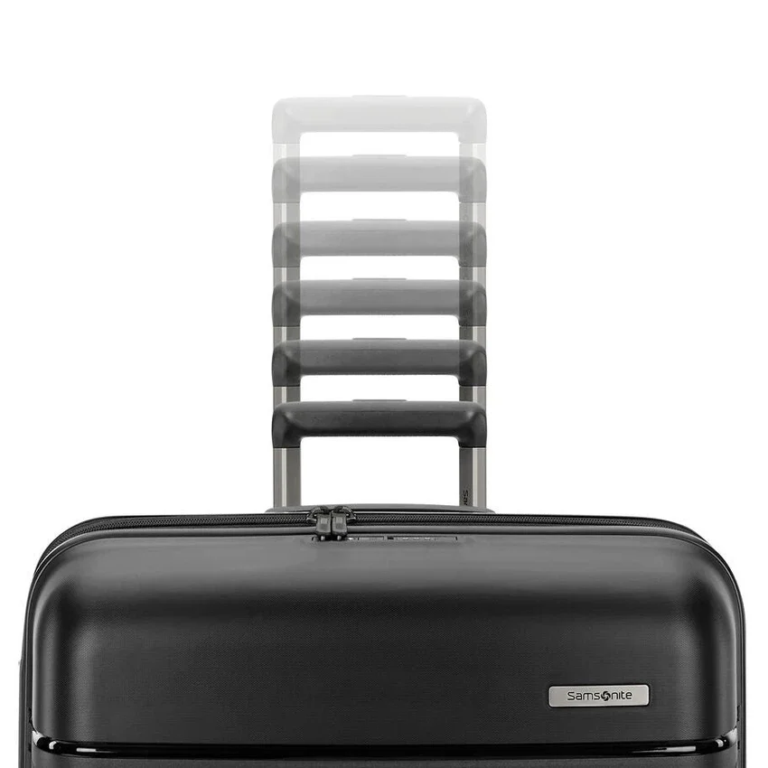 La maleta de equipaje de mano Elevation™ Plus cuenta con un innovador asa RightHeight™ diseñada para ajustarse en incrementos de 1 pulgada y ruedas giratorias que le permiten maniobrar con facilidad por espacios reducidos. Ofrece un amplio espacio de almacenamiento con cubos de embalaje grandes y medianos, y una bolsa de lavandería extraíble.