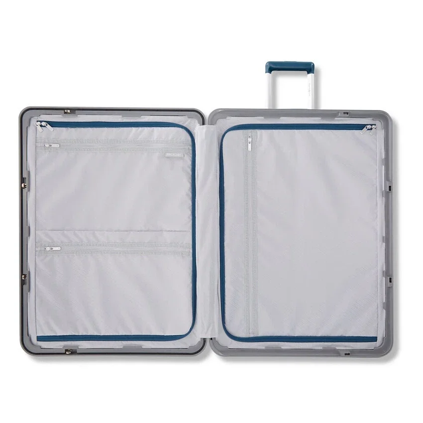 - destaca con un diseño sofisticado, funcionalidad moderna y una maleta ligera sin cremallera; tu Framelock Max rompe con el equipaje convencional al que la industria está acostumbrada. Su innovadora y duradera estructura ofrece un mecanismo Eazylock™ de alta seguridad, que se controla fácilmente mediante un tirador deslizante centralizado para bloquear y desbloquearla.