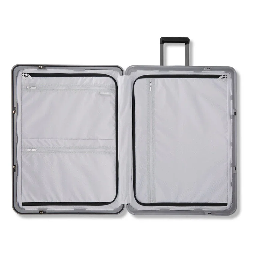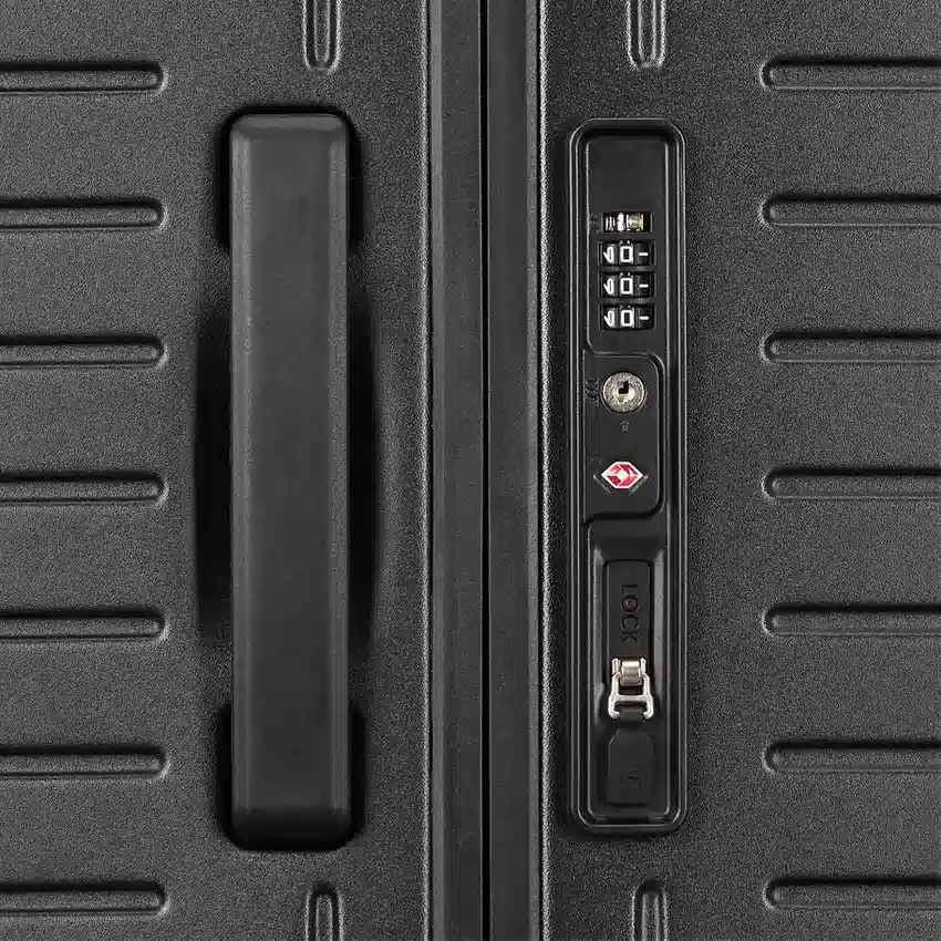 - destaca con un diseño sofisticado, funcionalidad moderna y una maleta ligera sin cremallera; tu Framelock Max rompe con el equipaje convencional al que la industria está acostumbrada. Su innovadora y duradera estructura ofrece un mecanismo Eazylock™ de alta seguridad, que se controla fácilmente mediante un tirador deslizante centralizado para bloquear y desbloquearla.