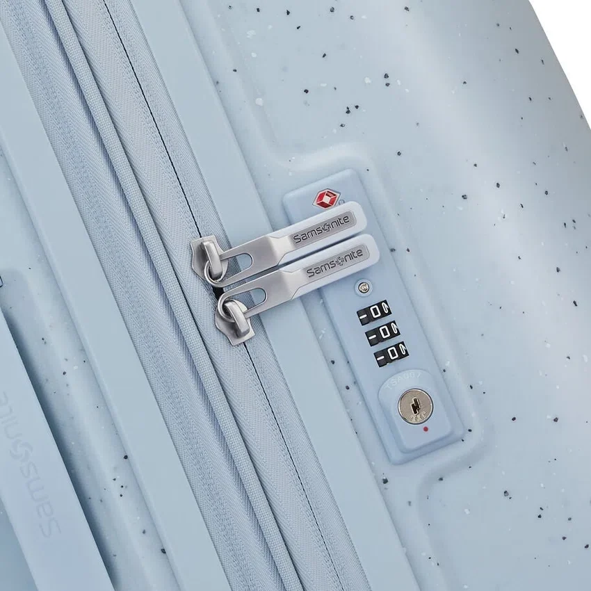 tecnología de asa antimicrobiana de Samsonite (SAM-AMH™) con un aditivo antimicrobiano patentado en el asa del trolley y en las asas de transporte superiores y laterales, que actúa para suprimir continuamente el crecimiento de bacterias y moho y evitar así el deterioro del asa