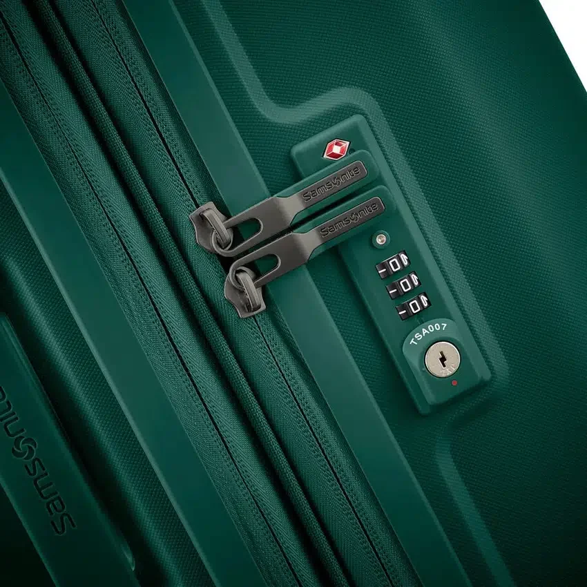 tecnología de asa antimicrobiana de Samsonite (SAM-AMH™) con un aditivo antimicrobiano patentado en el asa del trolley y en las asas de transporte superiores y laterales, que actúa para suprimir continuamente el crecimiento de bacterias y moho y evitar así el deterioro del asa