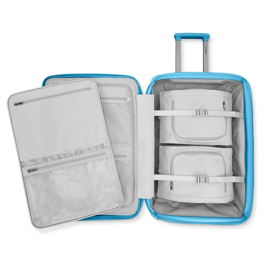 La organización de la maleta con ruedas extragrande de Venue es perfecta gracias al separador integrado, el Wetpack™ y el cubo de embalaje expandible. Las ruedas giratorias dobles le brindan la libertad de moverse sin esfuerzo, mientras que un gancho para trolley discretamente oculto hace que transportar bolsos adicionales sea muy fácil.