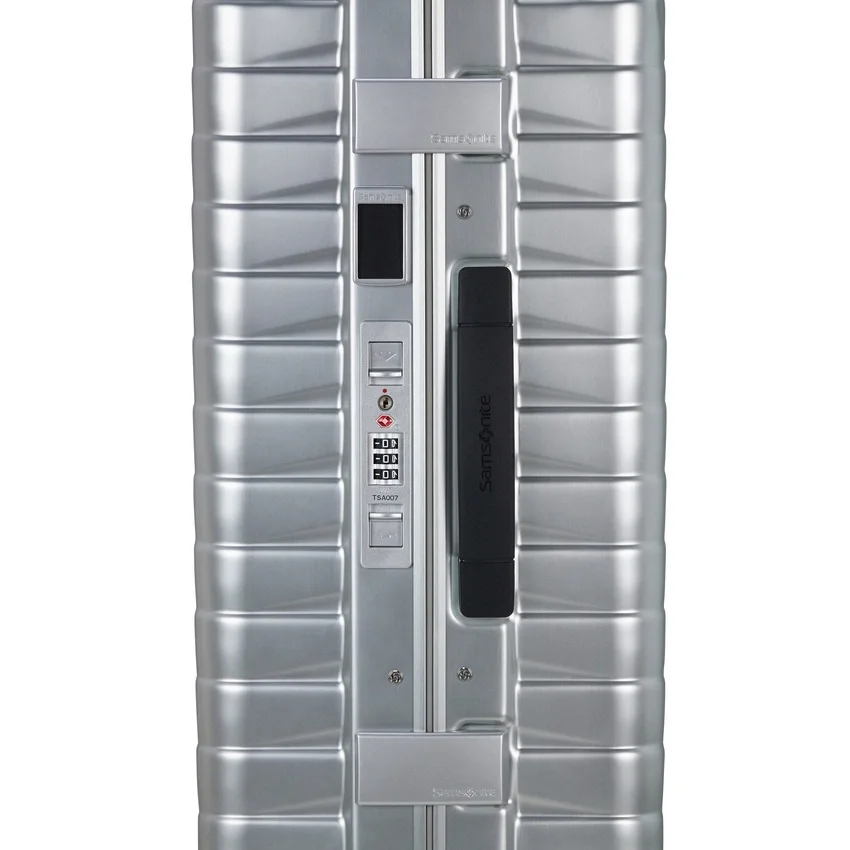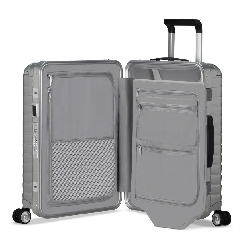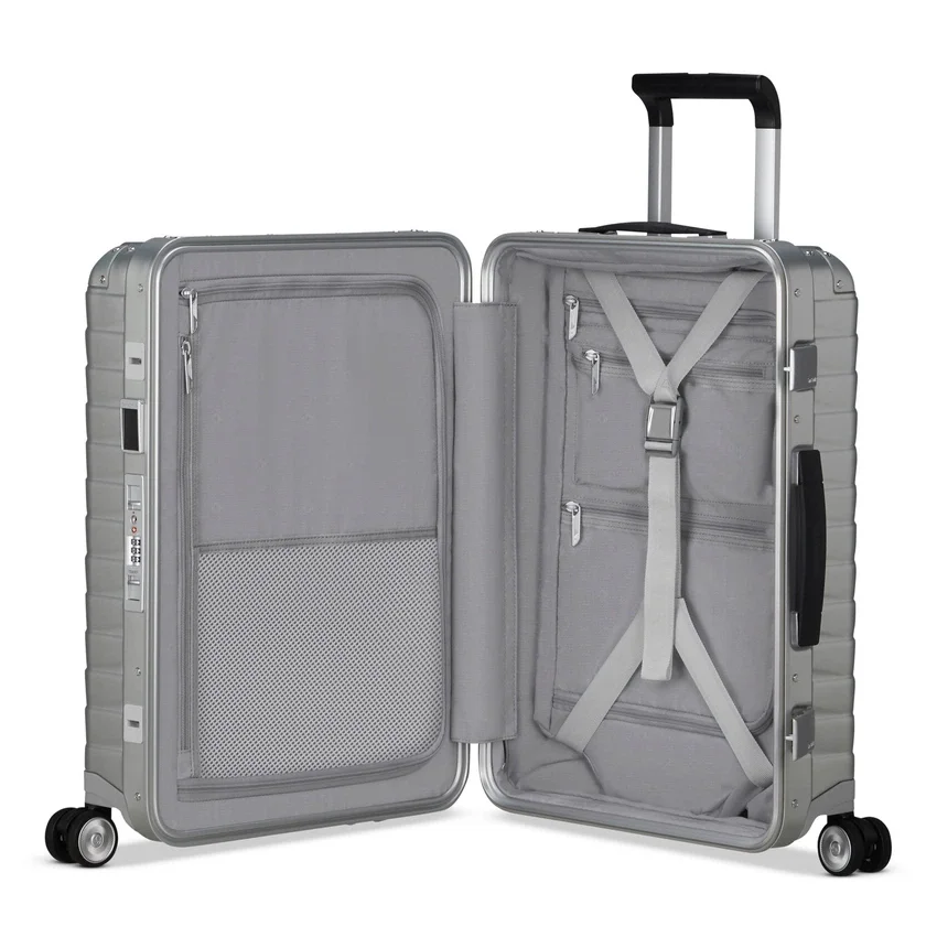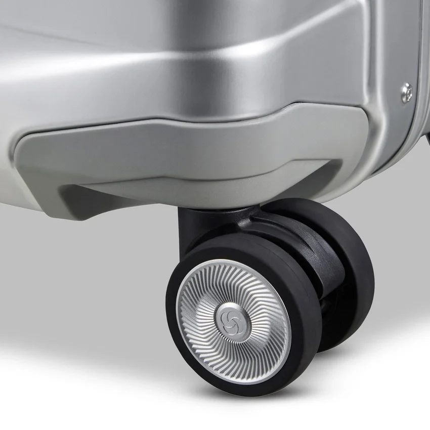 Resistente, pero llamativa, nuestra maleta grande con ruedas de 7,5 kg viene totalmente equipada con las características que tanto te gustan, incluyendo ruedas giratorias de 360° para viajar sin esfuerzo y candados aprobados por la TSA. Con el tiempo, el equipaje de aluminio es propenso a sufrir arañazos y abolladuras, lo que le da más carácter con cada viaje.características exteriores: