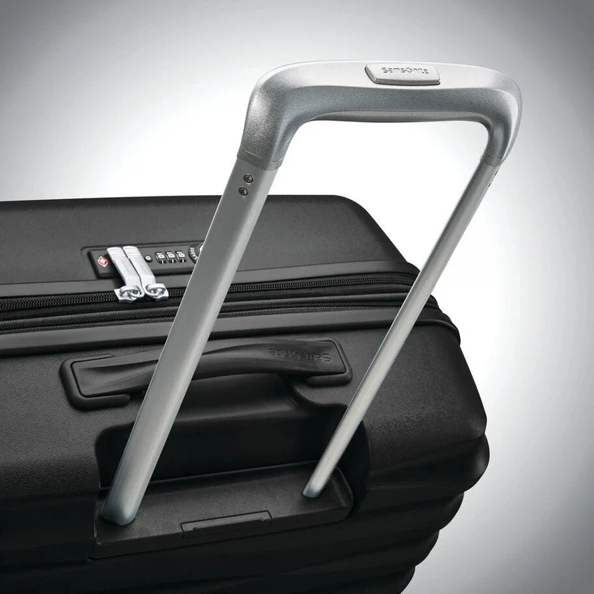 las asas de transporte laterales autorretráctiles permanecen al ras de la maleta para protegerla contra daños