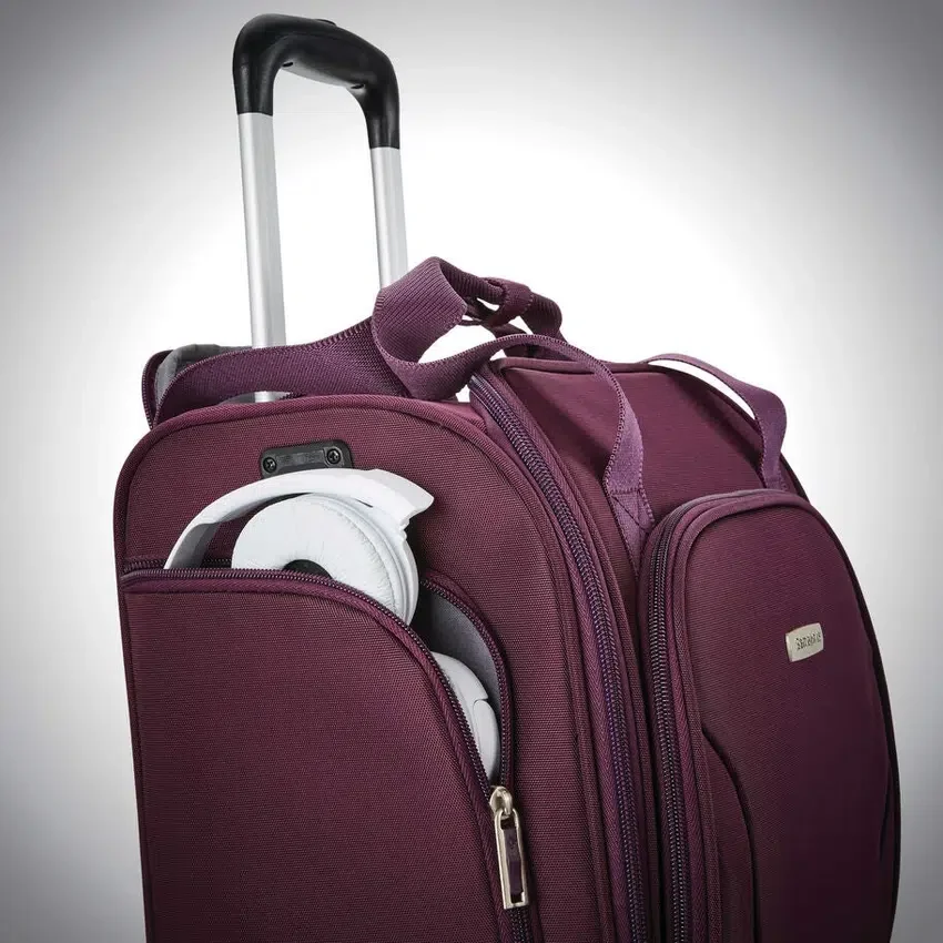 La funda inteligente en la parte trasera permite colocar la maleta sobre el asa de la mayoría de las maletas verticales
