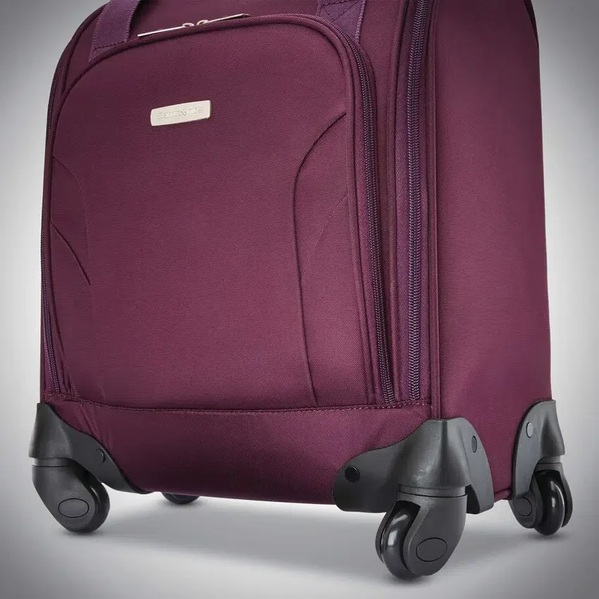 Esta maleta con ruedas que cabe debajo del asiento ofrece la comodidad moderna de un puerto USB y la movilidad de las ruedas giratorias para desplazarse con facilidad por cualquier superficie.