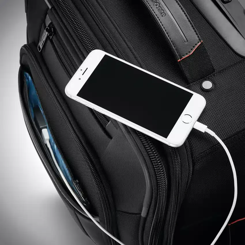 Cuando vives fuera de tu maleta, los detalles importan. Coloca tu teléfono en el bolsillo (patente en trámite) y se cargará de forma inalámbrica. Protege tu identidad con el bolsillo RFID. Cuelga la ropa de forma ordenada en el compartimento para trajes de tres pliegues. Y guarda los líquidos en el bolsillo Wetpak™. Todo en una maleta duradera y sofisticada.