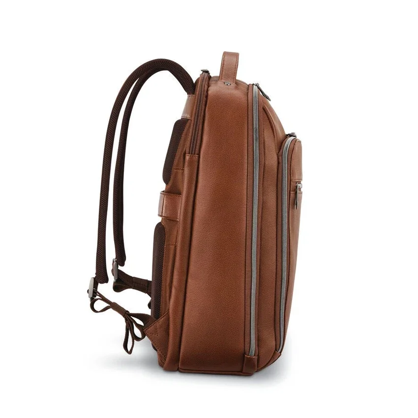 Lleve sus pertenencias con estilo con una mochila para portátil de piel de Samsonite, diseñada para brindar comodidad, protección y espacio para dos computadoras portátiles, documentos y artículos de uso diario.