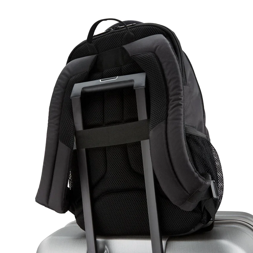 - gran compartimento principal para guardar cables, archivos, libros y ropa. También cuenta con un bolsillo de malla con cremallera para guardar objetos más pequeños