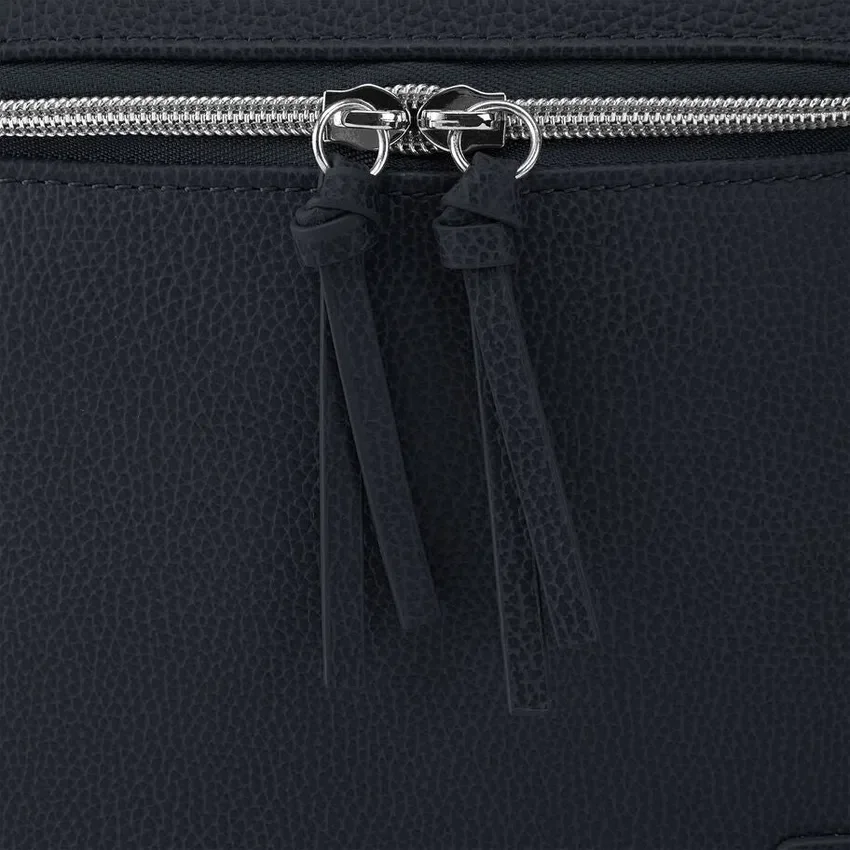 Elegante y sencilla, esta versátil mochila está confeccionada en piel granulada con detalles metálicos plateados, lo que le confiere un estilo atemporal y vanguardista que combina con prácticamente todo.