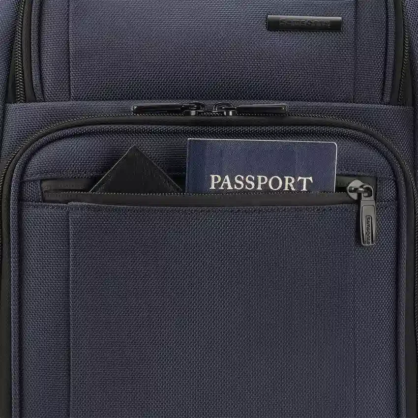 El compartimento principal cuenta con organización adicional: 2 bolsillos de malla y una funda para carpetas que se puede usar para archivos o documentos, o se puede dejar plana si quieres más espacio para empacar.