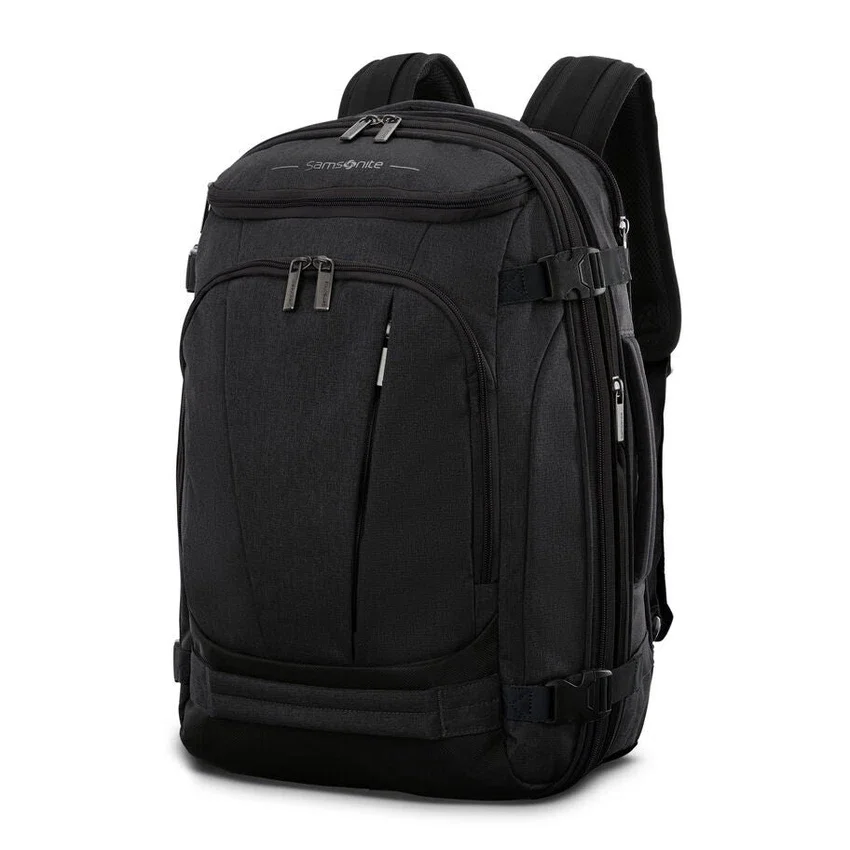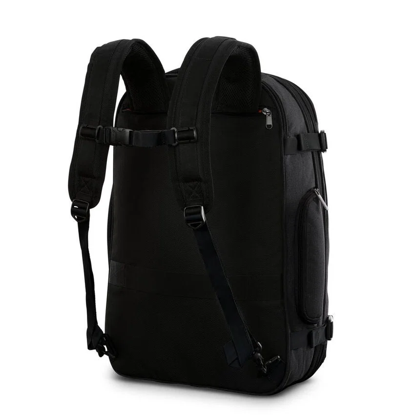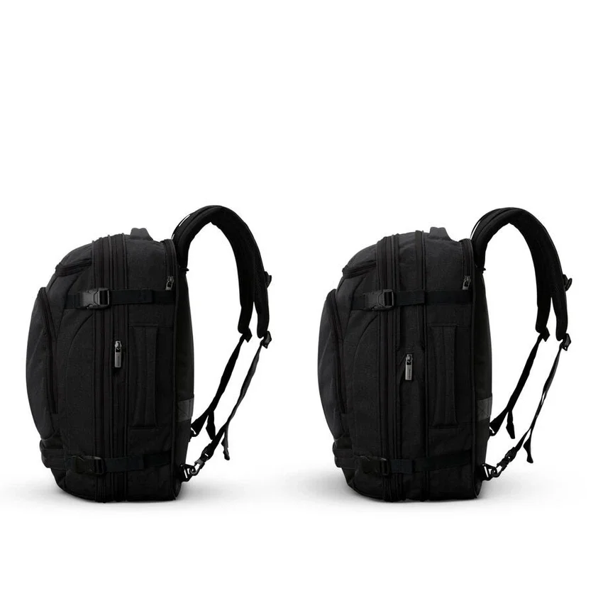 Esta mochila tiene un montón de bolsillos estratégicamente colocados por dentro y por fuera para que todo tenga su lugar. No solo es fácil de organizar, sino que es expandible con correas de compresión externas para que puedas meter tu mochila favorita en el compartimento superior del avión.
